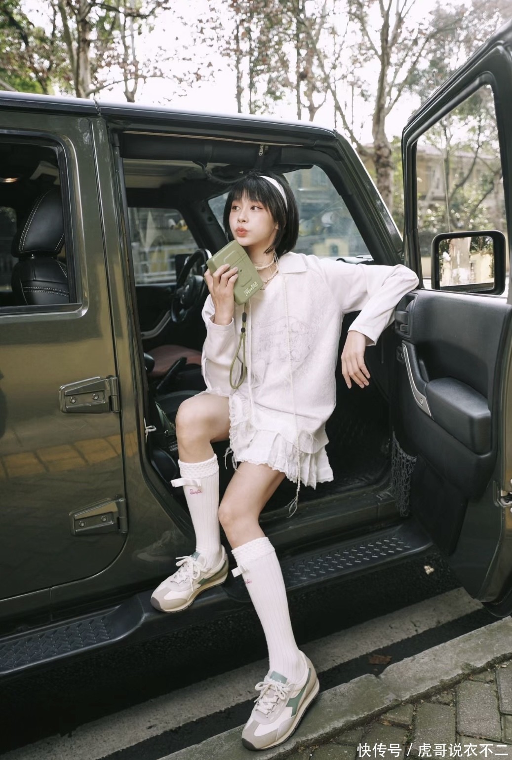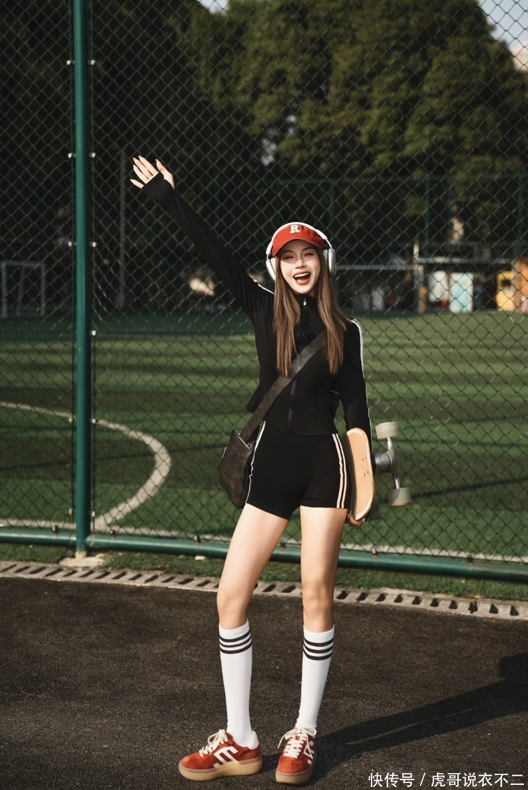 六、长筒袜穿搭在运动风穿搭中,长筒袜虽然是配饰,但也是必不可少的存在。不但可以修饰腿型,更能凸显腿长。