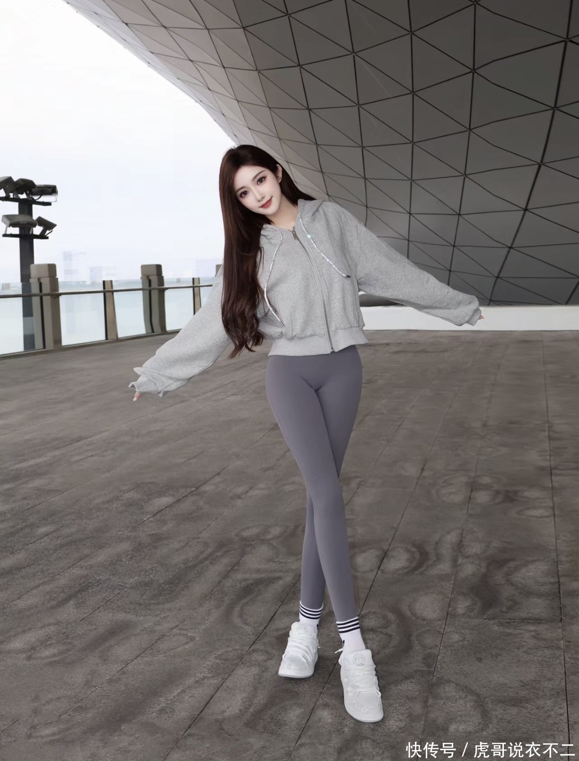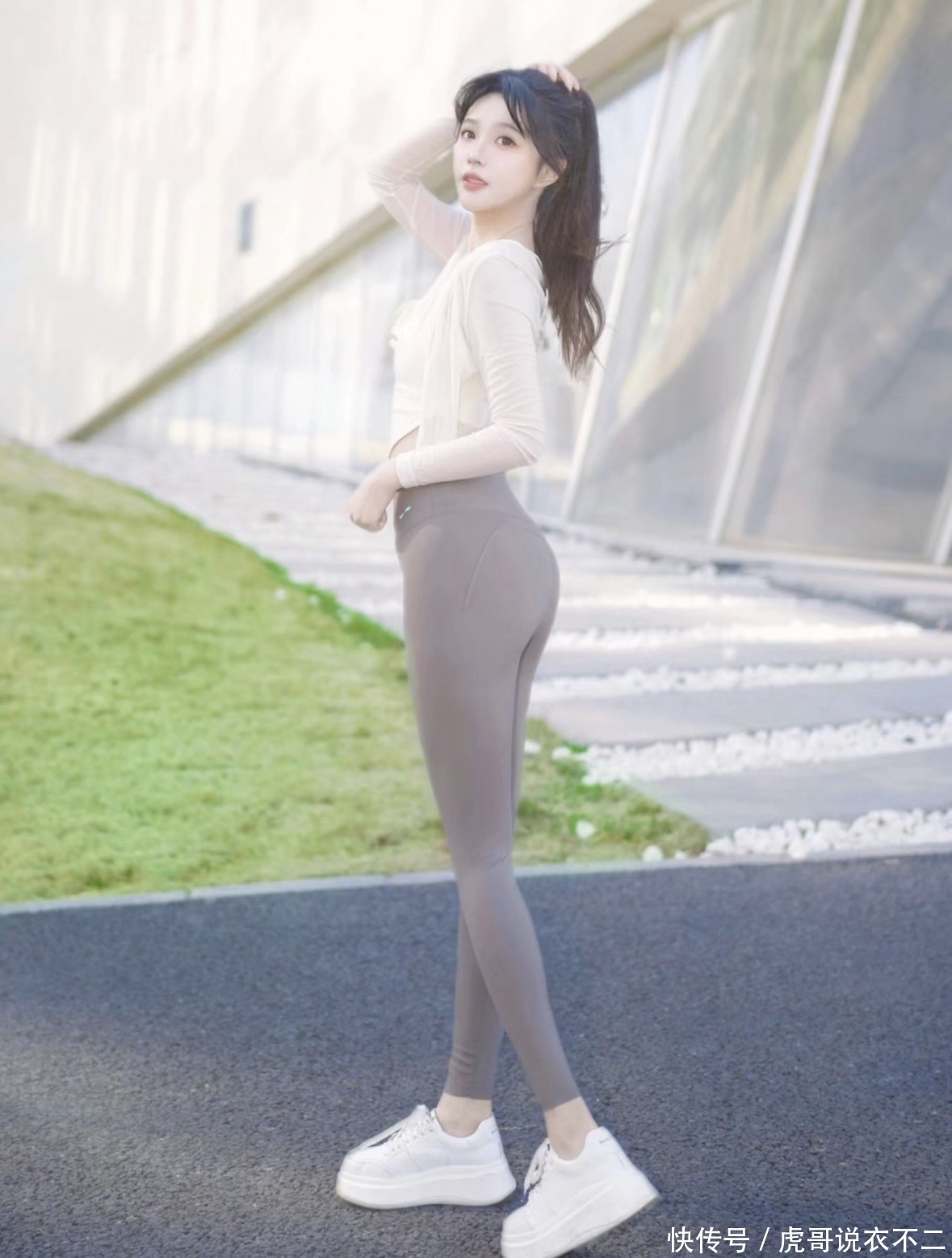 但如果身材够苗条,瑜伽裤确实是不错的选择,短款卫衣+瑜伽裤+运动鞋,就能轻松展现完美身材,活力感十足。