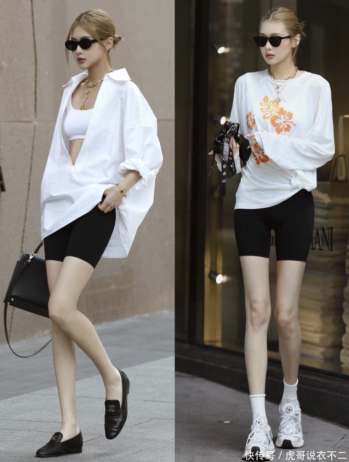 二、骑行短裤作为运动风中的小众单品,骑行短裤与瑜伽裤有着异曲同工之妙,但骑行短裤的搭配范围也有着更多可能性。