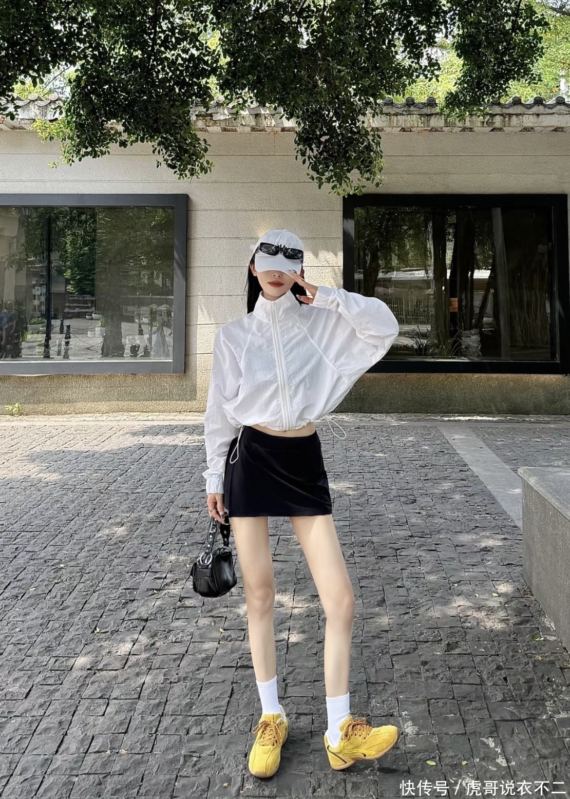 对于微胖身材的女生,更加推荐带外套的套装,宽松的卫衣开衫,内搭露脐背心+短裙,适当的露肤以及外套的加持,可谓是遮肉显瘦两不误。