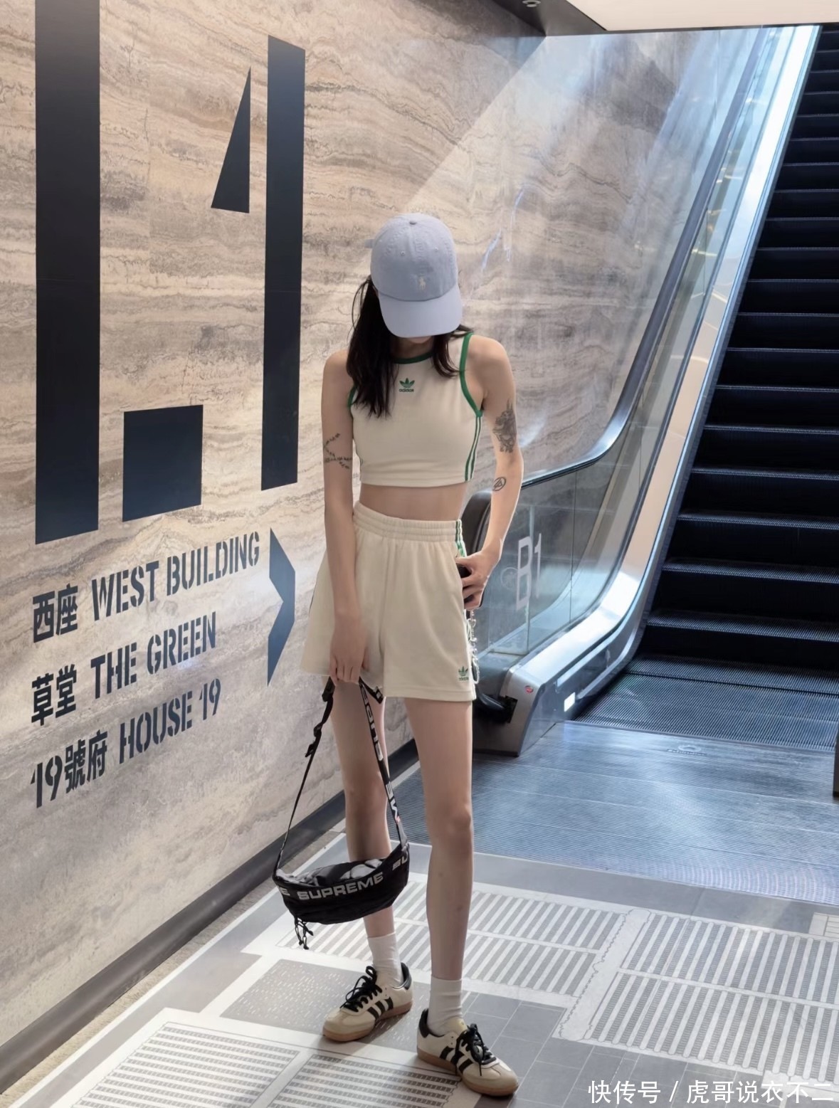 运动风背心+短裤,虽然对身材要求特别高,但也是真的显瘦。